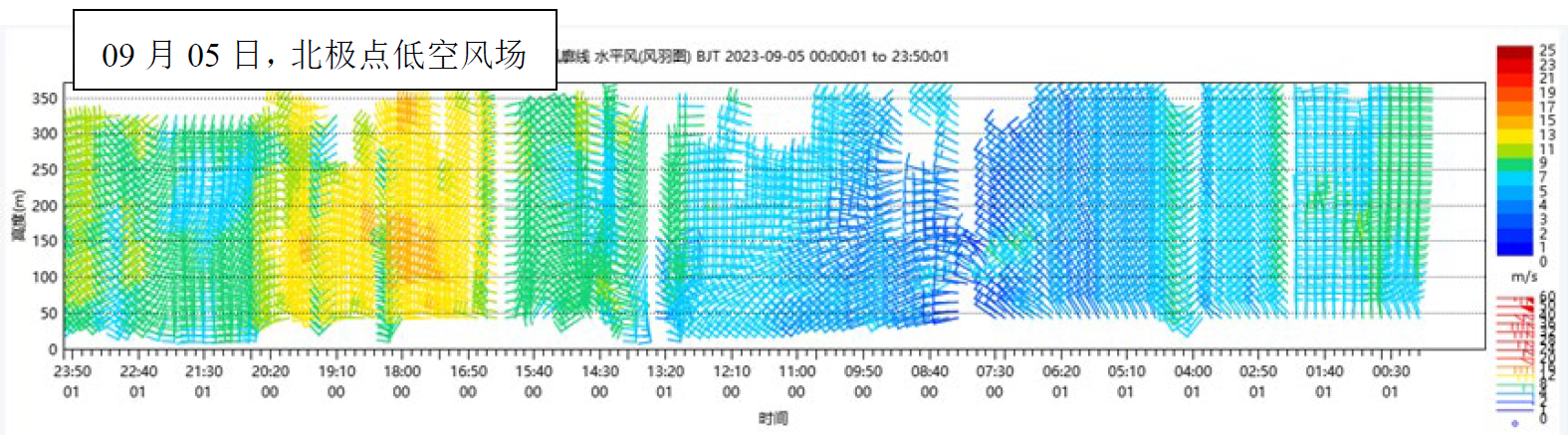 在本次科考中,出现了许多特殊风现象,青岛华航首次利用整个航路的低层空中风数据,分析北温带、北极圈以及北极点的低空风场特征,制作首个北极科学考察航途低层风图集,以掌握北极航路及沿途环境特征。典型风场展示: